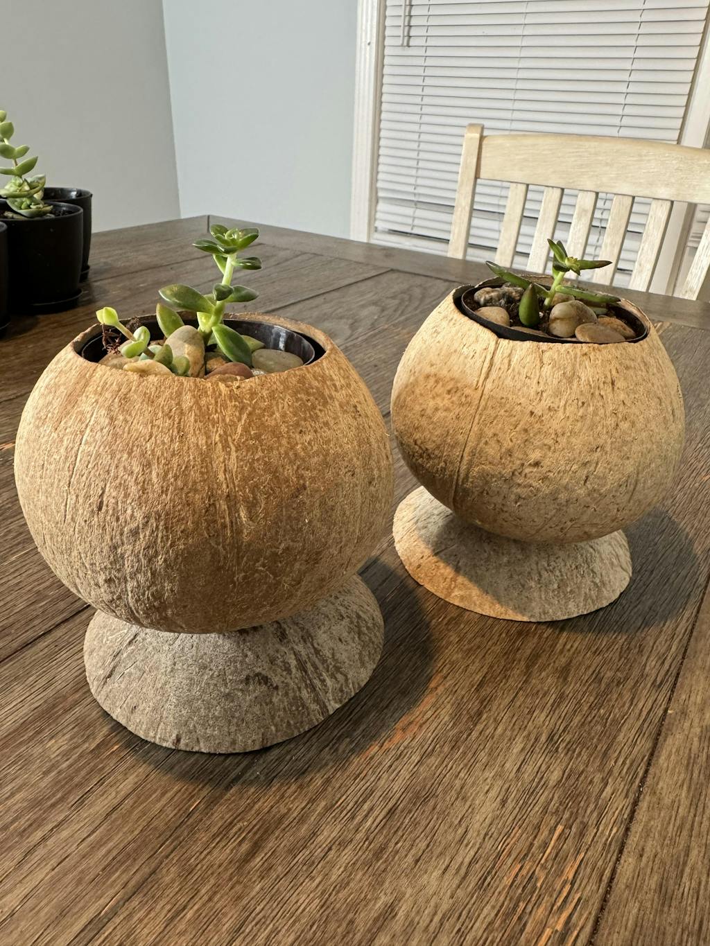 I absolutely loved my experience with the Rainforest Bowls Pedestal Coconut Planters! My package arrived fast and were well packaged so they made it safely to my home. The craftsmanship is beautiful, and I appreciate the thoughtful use of repurposed coconut shells—such a creative and sustainable design. They’re the perfect blend of natural elegance and eco-conscious living. I used mine to repot succulents, and they look stunning both indoors and outdoors. These planters truly bring art, sustainability, and functionality together in the best way.