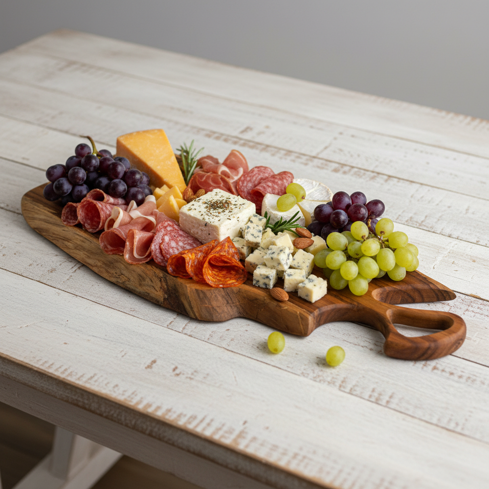 Uses: Use this beautiful board for chopping or serving charcuterie cheeses, meats, fruits & veggies etc.