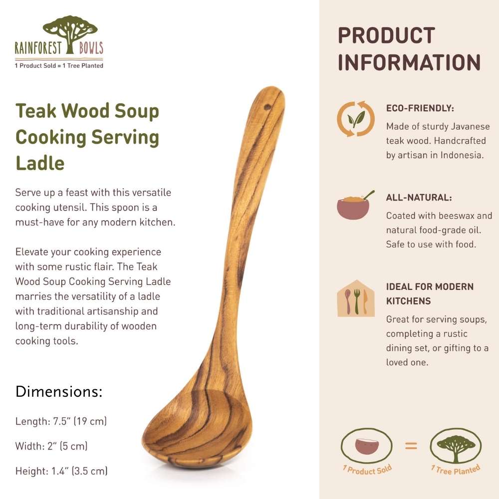 UNIQUE STYLE, CARVED BY CRAFTSMEN: Introducing the Teak Wood Cooking and Serving Ladle, a reliable helper in your kitchen. Available in two sizes: regular and jumbo. It’s designed for more than just soups—use it to serve sauces, drizzle gravy, portion pancake batter, or pour drinks like lemonade, juice, or punch with ease and confidence.