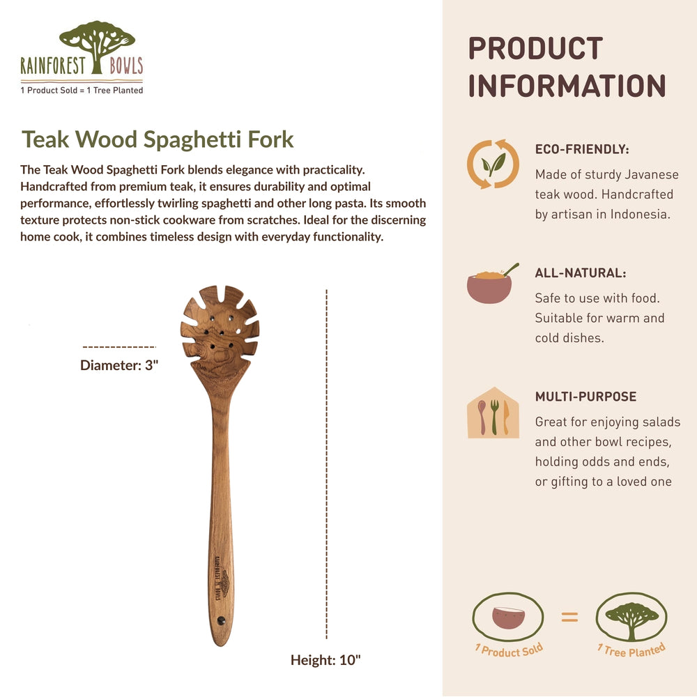 UNIQUE STYLE, CARVED BY CRAFTSMEN: The Teak Wood Spaghetti Fork is expertly handcrafted from premium, durable teak wood, known for its strength and natural resistance to wear. Designed for both functionality and care, this utensil is perfect for effortlessly twirling spaghetti and other long pasta, making meal preparation smoother and more enjoyable. Its smooth finish and gentle wooden texture protect your non-stick cookware from scratches, extending the life of your pots and pans. Combining traditional craftsmanship with practical design, this fork offers lasting performance for the discerning home cook seeking quality and reliability in their kitchen tools.